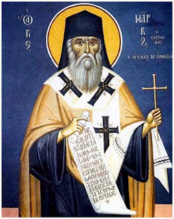 Τό 1436 καί ἐνῶ ακόμη ήτο ιερομόναχος ὁ Πατριάρχης Αλεξανδρείας τόν διορίζει ως ἀντιπρόσωπόν του εἰς τήν συγκληθεῖσαν σύνοδον διά ἔνωσιν τῶν ἐκκλησιῶν. Τό ϊδιον ἔτος ὁ αυτοκράτωρ Ιωάννης ὁ Παλαιολόγος τόν αναγκάζει νά δεχθῆ τόν Μητροπολιτικόν θρόνον τῆς Εφέσου πού είχε χηρεύσει ἐκεῖνον τόν καιρόν. Ό αυτοκράτωρ δείχνει τήν μεγάλην ἐκτίμησιν πού ἔτρεφεν εἰς τόν άγιον Μάρκον διορίζοντας τον γενικόν ἔξαρχον τῆς συνόδου. Ούτως ὁ άγιος ήναγκάσθη νά άκολουθήση τόν Πατριάρχην καί τήν λοιπήν άντιπροσωπείαν εἰς τήν Ἰταλίαν. Ό άγιος Μάρκος έπῆγεν εἰς τήν σύνοδον μέ τάς καλυτέρας προθέσεις καί ἔδειξε τήν διαλλακτικότητα του μέ τόν λόγον πού συνέθεσε διά τόν πάπαν, προτού ακόμη αρχίσουν αἰ ἐργασίαι τῆς συνόδου εἰς τήν Φερράραν. Μερικοί μάλιστα Ὁρθόδοξοι αντιπρόσωποι παρεξήγησαν τόν Μάρκον διά τήν διαλλακτικότητα τοΰ ύφους του εἰς τόν διάλογον μέ τόν καρδινάλιον Κεσσαρίνι, καί άπήτησαν ὁπως εἰς τό ἐξῆς ὁμιλῆ ὁ Βησσαρίων, Μητροπολίτης Νικαίας. Τό πρώτον θέμα τών συζητήσεων ήτο τό καθαρτήριον πΰρ. Τοΰ Βησσαρίωνος άδυνατοΰντος λόγω άνεπαρκοΰς θεολογικής καταρτίσεως νά ὁμιλήση, ώμίλησε διά τούς Ὁρθοδόξους ὁ άγιος Μάρκος, ἐκφωνήσας ἐπί τοΰ θέματος τέσσαρες αντιρρητικούς λόγους. Αι κρυστάλλινοι ορθόδοξοι απόψεις, ως ἐπαρουσιάσθησαν άπό τόν άγιόν μας, ἐνεθουσίασαν τόν αυτοκράτορα, ὁ ὁποῖος προσέβλεπεν εἰς τόν Μάρκον ῶς τόν μόνον Ὁρθόδοξον θεολόγον πού ήδύνα-το νά άπαντα ευχερώς εἰς τούς λόγους τών παπικών. Άλλα ὁ περί τά θεῖα άσχετος βυζαντινός αυτοκράτωρ ήλπιζεν ὁτι αἰ ορθόδοξοι απόψεις θά ἐπεκράτουν, μή γνωρίζων ὁτι οί παπικοί θά επέμεναν αμετακίνητοι εἰς τάς πλάνας των. Δι' αυτόν τόν λόγον, ὁταν είδεν ὁτι ή παράλογος επιμονή τών λατίνων θά ἐναυαγοΰσε τόν πολιτικόν του σκοπόν ήτοι τήν ἔνωσιν τών δύο εκκλησιών καί τήν ἐξ αύτῆς άναμενομένην παπικήν βοήθειαν δι' άντιμετώπισιν τών Τούρκων ῆρχισε νά πιέζη τούς Ὁρθοδόξους νά ακολουθήσουν μίαν ήπιωτέραν ή καλύτερον ἐνδοτικήν γραμμήν. |